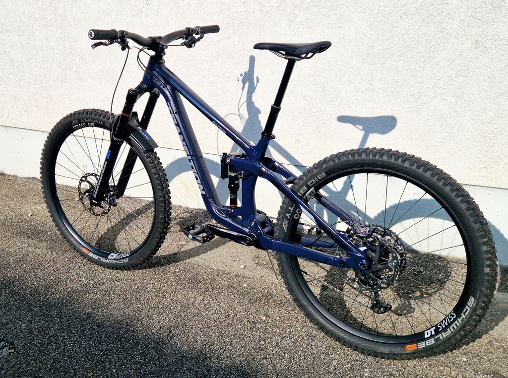 - Transition Patrol Mullet Alloy Blueberry Bike ist in neuwertigem Zustand! In der Saison 2023 für zwei Parkbesuche genutzt, seither eingelagert! Rahmengrösse "M" ideal für Körpergrössen 165-175 cm Enduro/Park Bike mit ausgeprägt flachem Lenk- und steilem Sitzwinkel, insbesondere sorgt der steile Sitzwinkel für angenehme Uphill performance! Das Patrol ist eines der Aushängeschilder von Transition Bikes und kommt als Allzweckwaffe im Mullet Setup. In der Aluminium Variante mit perfekt verarbeiteten Schweissnähten, in Design und Haltbarkeit unübertrefflich. Die Laufräder mit 29 Zoll vorne und 27,5 hinten bringen einerseits ein sehr gutes Überrollverhalten im groben Terrain und andererseits eine sehr gute Wendigkeit und Verspieltheit in engen, kurvigen Trails und in der Fun- und Jumpline. Das Ultimate Fahrwerk bietet potente 160 mm Federweg an Front und Heck. Variante: XT-RockShox / Fit: "M" Lenkwinkel: 63.5° / 63° Sitzwinkel: 69.6 / 69.1° Rahmen: Patrol Alu Mullet 160mm Dämpfer: RockShox Super Deluxe Ultimate Air, 205mm x 60 mm Gabel: RockShox ZEB Ultimate, 160mm, 44mm Offset, Steuersatz: FSA NO.55R/57 Vorbau: Renthal Apex 35 (40mm) - tuned Lenker: Renthal Carbon Fatbar 35mm, 30mm Rise, 780mm - tuned Griffe: ERGON GD1 Sattel: ERGON SM-Enuro Sattelstütze: OneUp Dropper Post Bremsen: Shimano XT M8120 / 4-Kolben Bremsscheiben: Shimano XT Disc Ø200 / Ice-Tech Shifter: Shimano XT M8100 Schaltwerk: Shimano XT M8100 Kassette: Shimano XT M8100 (10-51t) Kette: Shimano XT M8100 Kettenführung: OneUp Bash Guide Kurbel: Shimano XT M8100 (32t/165mm) Laufradsatz: DT Swiss EX1700 Spline30- Naben DT Swiss 350 Reifen / vorne: Schwalbe Magic Mary, Super Trail, Soft (29x2.4) - tubeless Reifen / hinten: Schwalbe Big Betty, Super Trail, Soft (27,5x2.4) - tubeless Technische Details: Material: Aluminium 6061 Federweg Standard: 160mm Federweg hinten mit 60 mm Dämpferhub und 27-33% Sag Federweg Optional: 170mm Federweg hinten mit 65 mm Dämpferhub und 28-34% Sag Chainguidemount: ISCG-05 Dämpfer Einbaulänge: Standard: 205mm X 60 mm Dämpferhub für 160mm travel Dämpfer Einbaulänge: Optional: 205mm X 65 mm Dämpferhub für 170mm travel Dämpfer Buchsen: Trunnion Standard oben | 25 mm x 8 mm unten Federgabel: 160 mm (Optional 170 mm) Sattelstützendurchmesser: 31,6 mm Kettenblatt: max. 34T Innenlager: Euro BB 73 mm Schaltwerk Aufnahme: SRAM UHD max. Bremsscheibengröße: 223 mm
