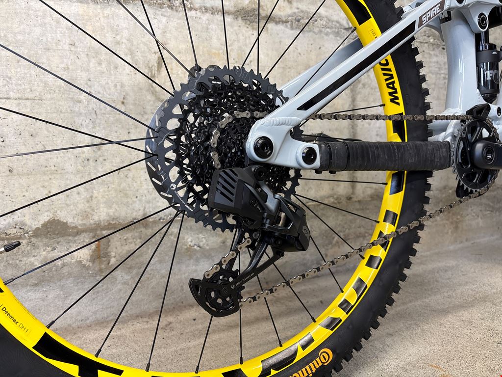 - -Transition Spire Alloy 2025 29" Frame Grösse Medium -Marzocchi Super Z 29" 180mm 44mm 58HT GRIP X - Shiny Black -2026 FOX Float X2 Performance Elite Trunnion | 2-Pos | 205mm x 65mm -Sram XG-1275 GX Eagle Kassette mit Sram GX-Kette -Sram Maven Ultimate Stealth Bremsen-Set -Sram Bremsscheiben (vorne 220mm, hinten 200mm) -SRAM X01 Eagle Boost DUB DM 12-fach Carbon Kurbelgarnitur -Burgtec Penthouse Flat MK5 B-Rage Edition Plattformpedale -Burgtec Vorbau Spacer Kit -Sram GX Eagle AXS Upgrade Kit -AXS Pod Schalthebel -Mavic Deemax DH YLW 29" Boost Laufradsatz SRAM XD / Boost 12x148mm -RockShox Reverb AXS B1 31,6mm Vario-Sattelstütze 200mm -Continental Kryptotal 29x2.4 Downhill vorne / hinten -ODI Griffe Ruffian -Fox camo Mudguard -Chromag Lenker 35mm rise -SDG Bel Air Sattel Das Bike ist fabrikneu und wurde nur einmal im Quartier Probegefahren. Custom-Aufbau fertiggestellt Ende März 2026. Den Rahmen habe ich im November 2025 angeschafft, alle Anbauteile stammen aus dem Frühjahr 2026. Probefahrt möglich, Preis verhandelbar.