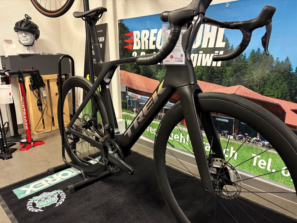 - Spezifikationen Modell-Jahr 2024 Farbe Deep Smoke Basisfarbe schwarz Rahmengrösse 56 cm / 22" Rahmenmaterial Carbon Schaltung Vorne: Shimano Ultegra R8150 Di2, Hinten: Shimano Ultegra R8150 Di2 Bremsen Hydraulische Scheibenbremse Shimano Ultegra Bereifung Bontrager R3 Hard-Case Lite, Aramidwulstkern, 120 TPI, 700 x 25 mm Radsatz Bontrager Aeolus Pro 51 Kurbelgarnitur Shimano Ultegra R8100, 52/36 Z., 172,5 mm Kurbelarmlänge Kassette Shimano Ultegra R8100, 11-30, 12fach Lenker Madone Integrierte Lenker/Vorbau-Einheit, OCLV Carbon Sattel Bontrager Aeolus Elite, Austenitstreben, 145 mm Breite Sattelstütze Madone, Aero-Sattelstütze aus Carbon, 0 mm Versatz, lange länge Gabel Trek, Madone, Vollcarbon mit KVF-Profil Bei Interesse gerne Telefonisch melden. 034 491 20 00 Unseren gesamten Lagerbestand können sie auf unserer Webseite einsehen. www.brechbuehl-2rad.ch