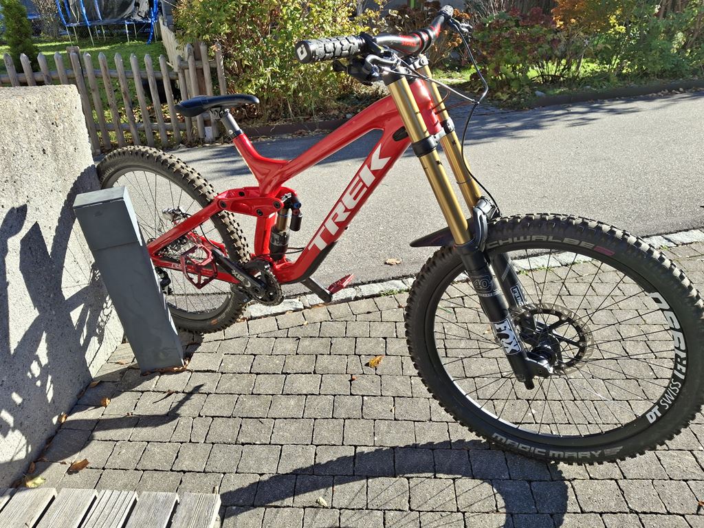 - Verkauf wegen Neuanschaffung. Das bike wurde bis vor kurzem noch gefahren und ist sofort einsatzbereit. Natürlich hat es die in dem Sport üblichen Gebrauchsspuren. Originale Partlist: https://www.vitalmtb.com/product/guide/Bikes,3/Trek/Session-9-9-DH-27-5-Race-Shop-Limited,18941 Was geändert wurde: - Bremsen: Magura MT7 - Pedale: Crankbrother Stamp 7 Lagre - Reifen: Magic Mary mit cushcore vorne und hinten - Zusätzlicher Spacer am Vorbau Die Gabel hat Anfang 2025 den letzten grossen Service bekommen und der Dämpfer im September. Bei Interesse oder Fragen gerne melden.