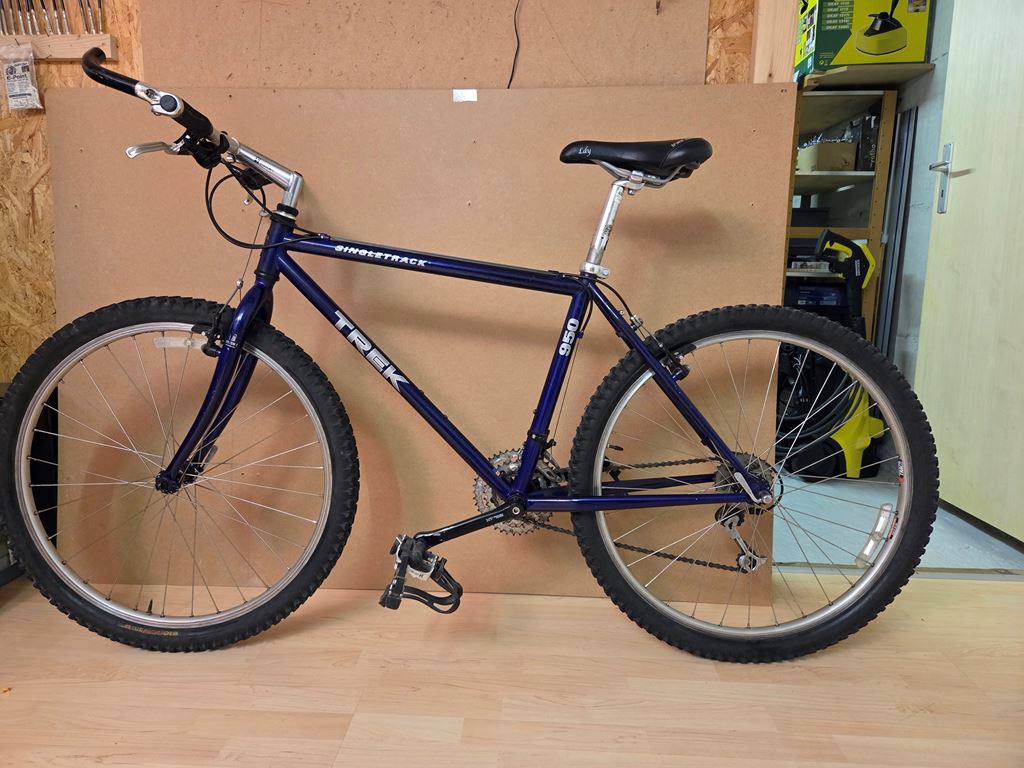 - Verkaufe mein original erhaltenes Trek Singletrack 950 Mountainbike aus den frühen 90er Jahren – ein echtes Retro-Schmuckstück für Liebhaber und Sammler! Rahmen: Trek 950, Stahlrahmen (True Temper OX), Größe ca. M Farbe: Original Blau mit intakten Decals Schaltung: Shimano Deore LX (Vollausstattung) Kurbelgarnitur: Shimano Alivio, 3-fach Bremsen: Shimano Deore LX V-Brakes Zustand sehr gepflegt, alle Komponenten im Orginalzustand
