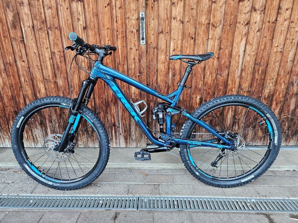 - Ich verkaufe mein Trek Slash 7 mit Aluminium-Rahmen. Es ist gebraucht, allerdings wurde es wenig gebraucht und ist daher in gutem Zustand. Einige Kratzer bzw. Gebrauchsspuren sind dennoch vorhanden. Ende Oktober 2025 wurde ein Service gemacht, weshalb das Bike sofort einsatzbereit ist. Die Rahmengrösse ist M (17.5"), weshalb es gemäss Hersteller für eine Körpergrösse von 166 - 180 cm geeignet ist. Es ist ein vollgefedertes Bike mit 160 mm Federweg vorne und hinten. Sattelstütze mit 120 mm Federweg vorhanden. Bremsen: Shimano Deore (vorne 203 mm / hinten 180 mm). Antrieb SRAM X9/X7 (2x10) Normale Gebrauchsspuren. Bike ist sofort einsatzbereit. Abholung/Übergabe: Abholung bevorzugt, Probefahrt bei Abholung möglich. Bei Fragen oder falls zusätzliche Fotos gewünscht sind kannst du dich gerne bei mir melden.