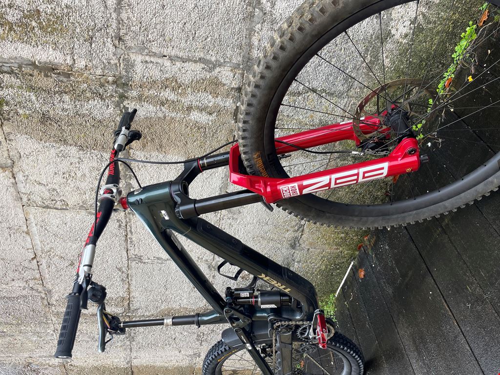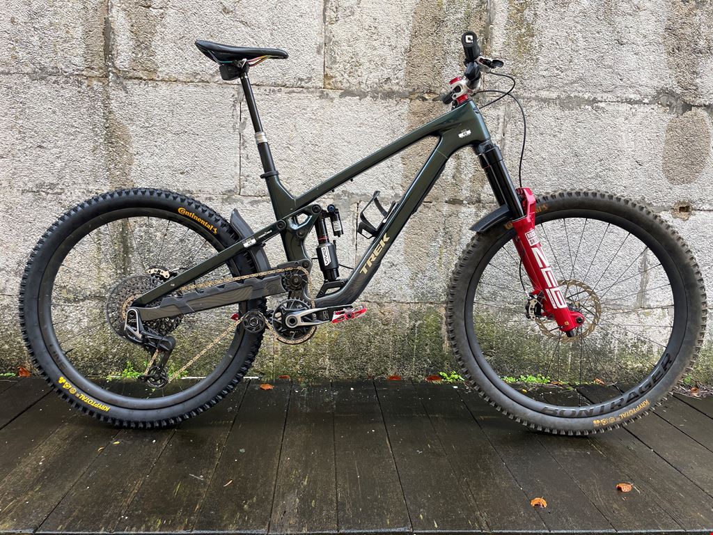 - Je vends mon vélo après deux saisons de pur plaisir. Le cadre en L a été utilisé une saison et protéger avec une protection invisiframe La roue avant est neuve. L’amortisseur Vivid ultimate est neuf. Le vélo est révisé avec des plaquettes de frein, une chaîne et d'autres pièces neuves. Équipement : SRAM X0 AXS t-type complet. Rockshox reverb axs 175 mm. Bontrager line pro 30 Carbone mullet (29/27.5) Rockshox zeb ultimate 170 mm charger 3.0. Rockshox vivid air ultimate Guidon et potence Race face turbine. Sram maven Ultimate 200 mm avant/arrière. Je laisse avec quelque pièce de rechange ainsi que la pièce pour conversion full 29