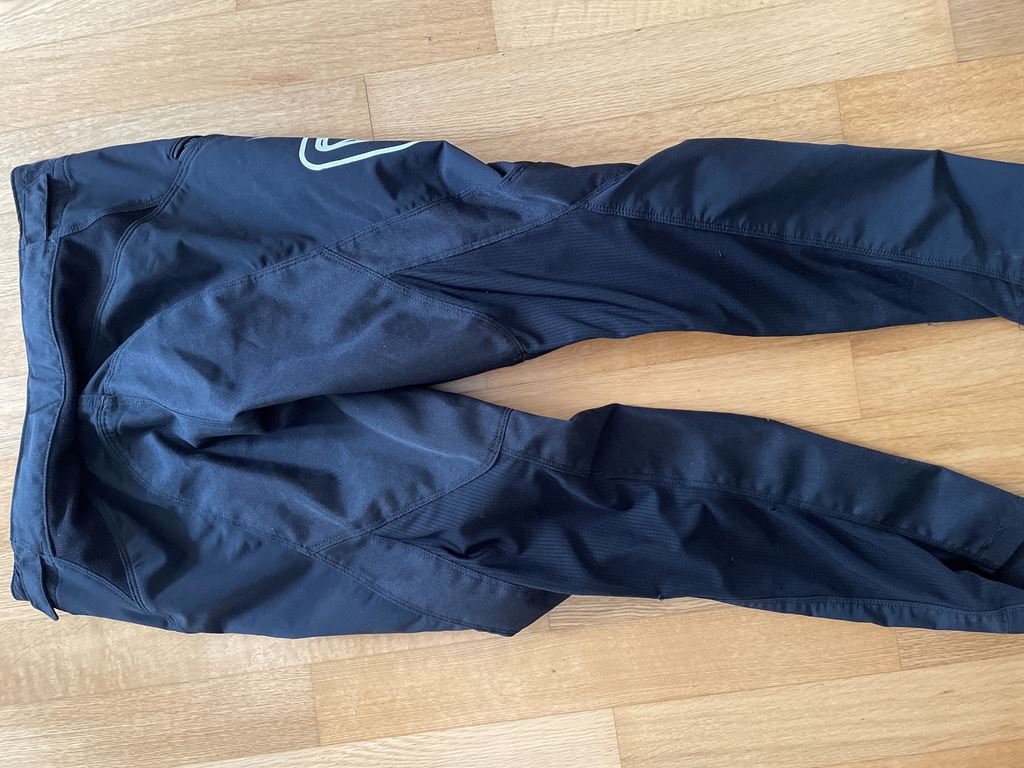 - wenig gebraucht und schon zu klein top hose, hinterteil spritzwassergeschützt, platz für schoner usw. bund einstellbar. kinder kids bikehose
