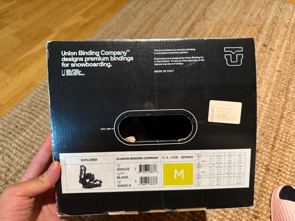- This is a brand new set of union Bindings. They are good for topping and could also be used on a regular snowboard. I also have an FC, so I don’t need this one. I also have the same model, but size L, which is suitable for 43+,