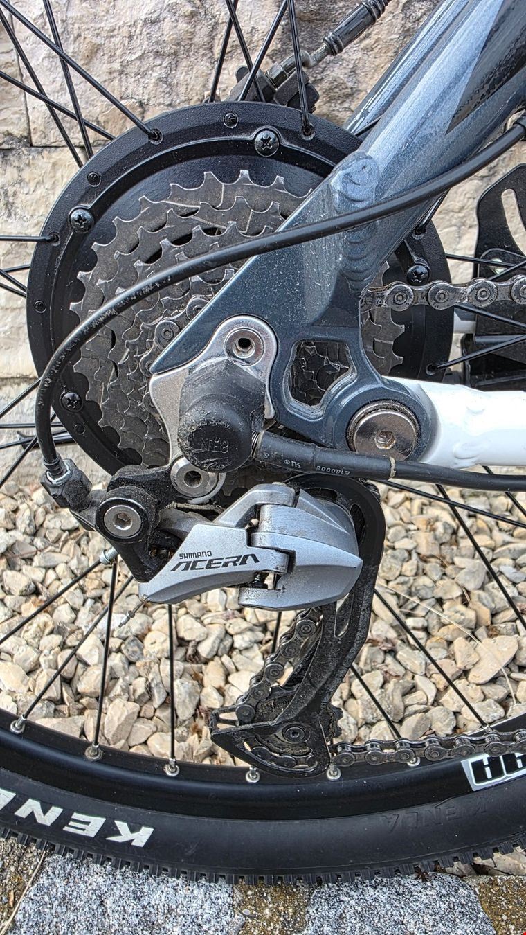 - Je propose un VTT électrique Totem d'occasion, tout suspendu, en bon état, âgé d'environ 4 ans. Il affiche 1 375 kilomètres au compteur, soit environ 30 cycles de charge. Le fabricant annonce une durée de vie de la batterie d'environ 1 000 cycles de charge. Taille M, idéal pour une personne mesurant entre 160 et 175 cm. Qualité de la marque TOTEM. Cadre : Aluminium (46 cm). Fourche avant : SR Suntour SF11-XCM V3-HLO-26. Freins : Freins à disque hydrauliques. Pneus : Kenda K1047 26". Transmission : Shimano Acera 27 vitesses. Couleur : voir photo. Poids : environ 23 kg (batterie incluse). Assistance électrique : Activation du moteur par capteur de couple intelligent. Batterie : Lithium-ion 36 V / 10,4 Ah. Assistance électrique jusqu'à 25 km/h. Durée de vie de la batterie : environ 1 000 cycles de charge. Temps de charge : environ 5 à 6 heures (80 % de charge en environ 2,5 heures). Autonomie : environ 50 km (en conditions optimales). Contenu de l'emballage : VTT électrique TOTEM tout suspendu 27 vitesses, chargeur, clé (1 pièce) Veuillez ne pas envoyer d'offres de prix ; les questions à ce sujet resteront sans réponse. Le prix est fixe, non négociable. Vente privée, sans garantie.