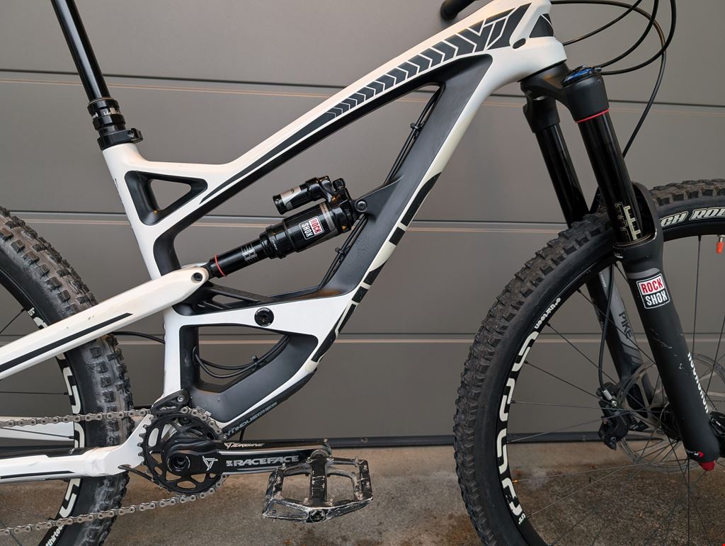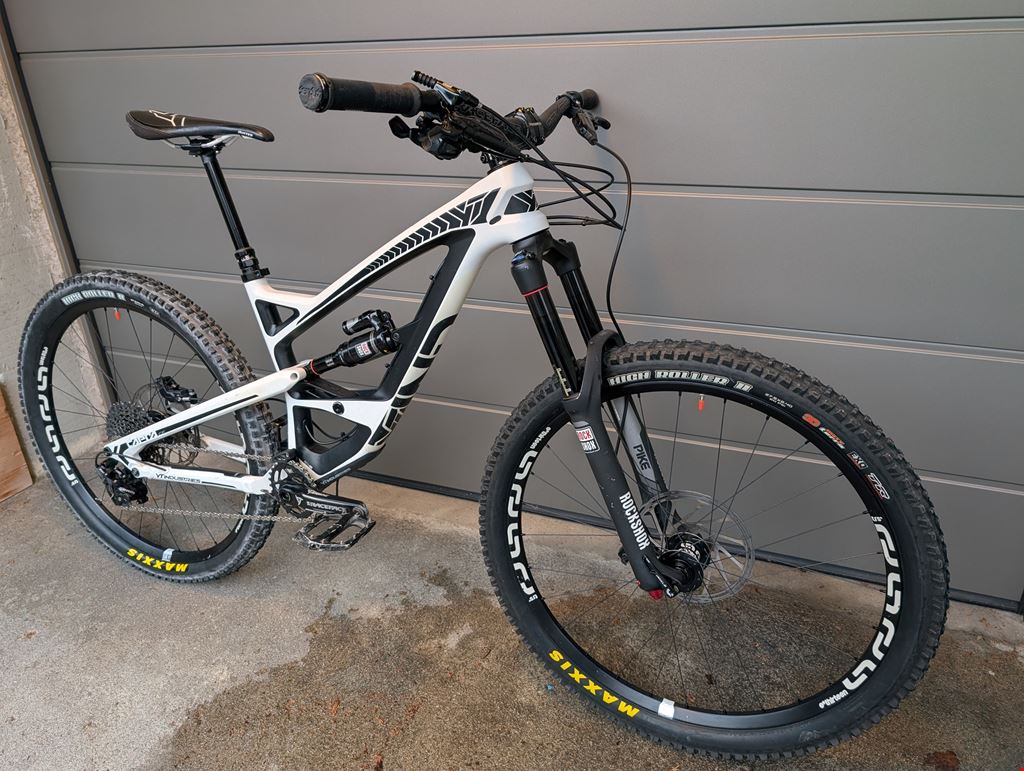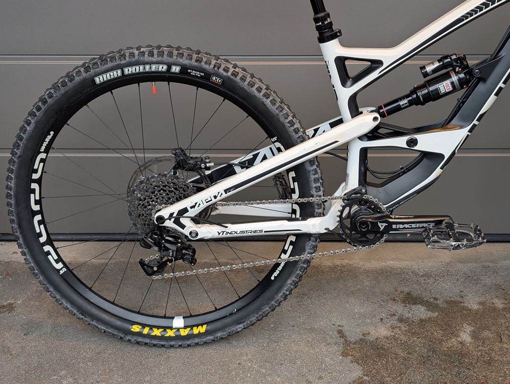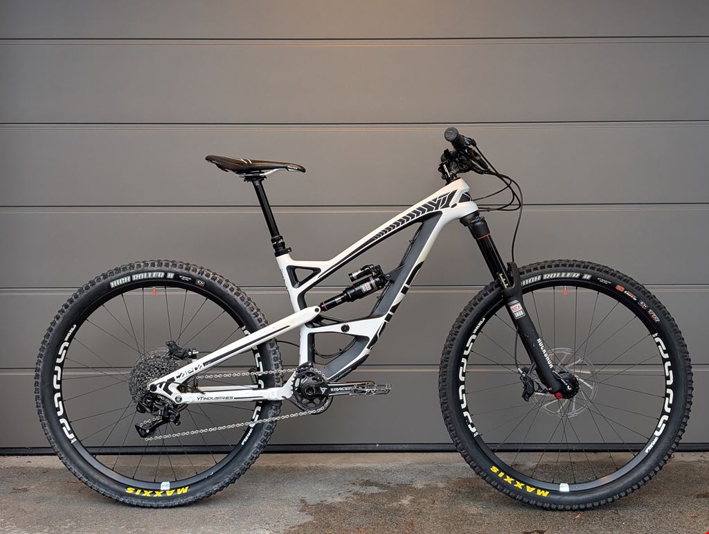 - YT Capra CF Comp 1 aus dem Jahr 2015 - Grösse S Das Bike wurde immer gut gewartet. Gabel und Dämpfer funktionieren einwandfrei. Die Bremsen wurden erst im letzten Herbst ersetzt. Der Vorderreifen ist neuwertig, der Hinterreifen wurde neu montiert. Das Hinterrad müsste noch zentriert werden. Sonst befindet sich das Bike in einem guten Zustand. Rahmen: YT Capra CF (Carbon) in Grösse S - 165mm Federweg Gabel: Rock Shox Pike RCT3 Solo Air 27.5 - 160mm Federweg Dämpfer: Rock Shox Monarch Plus+ High Volume Laufräder: ethirteen trs+ 27.5 Satelstütze: Rock Shox reverb Kurbeln: Race Face Turbine Lenker und Vorbaus: Race Face Atlas Schaltung: Sram X1 - 11-fach Pedalen: DMR Vault Bremsen: Sram Code RS Kettenblatt: Wolftooth Oval Chainring 28t Vorderreifen: Maxxis High Roller II 27.5x2.40 3C Maxxterra Exo Protection TR Tubeless Ready Hinterreifen: Maxxis High Roller II 27.5x2.40 Exo Protection Sattel: SDG Duster Lenkergriffe: Sensus