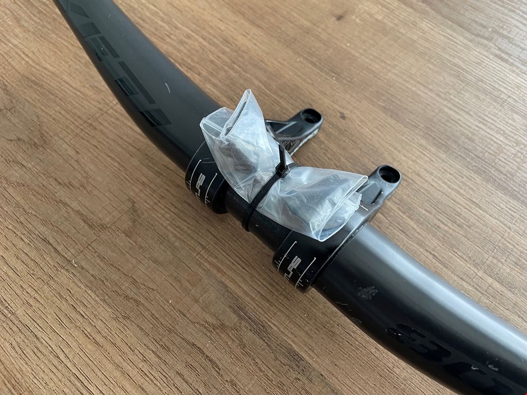 - Set aus Carbon Lenker und Vorbau: Der Lenker ist auf 760mm gekürzt und hat gebrauchspuren. Der Vorbau von Race Face Atlas Direct Mount hat 50mm länge und 0mm Rise