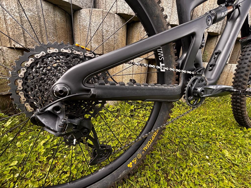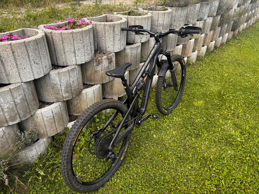 - Ich verkaufe mein top gepflegtes Yeti SB150 TURQ Carbon aus 2022 als Custom Build. Gekauft habe ich 2023 nur den Rahmen mit Dämpfer, die einzelnen Komponente habe ich selbst verbaut. Das Bike wurde regelmäßig gewartet und immer transportschonend behandelt. Es hat zwei leichte Gebrauchsspuren am Rahmen am Hinterbau, sonst wurde überall der Rahmen mit Folie bedeckt. Über die 2 Jahre wurde es sehr wenig gefahren, daher auch der Verkaufsgrund. Das Bike funktioniert einwandfrei. Ausstattung • Rahmen: Yeti SB150 TURQ Carbon (High-End Serie, 2022, Farbe: Raw) • Federung vorne: RockShox ZEB Ultimate 170 mm • Federung hinten: Fox Float X2 Factory • Laufräder: DT Swiss 370, 29” • Schaltung: SRAM GX Eagle 12-fach (Schaltwerk + Kassette), 32T Kettenblatt • Kettenführung: OneUp • Innenlager: SRAM DUB Pressfit • Sattelstütze: RockShox Reverb, 175 mm (Dropper) • Sattel: Marke "Velo" • Reifen: Continental Kryptotal (Tubeless vorne, Schlauch hinten) • Bremse: Shimano Deore XT mit Hayes 203 mm Scheiben, Center Lock • Lenker: Tag 780 mm • Vorbau: E*Thirteen, 50 mm Rise, 0° • Griffe: Tag • RockShox Gabel-Fender (Im Kauf nicht enthalten sind die Pedale, Trinkhalterung und TAG Handschützer)