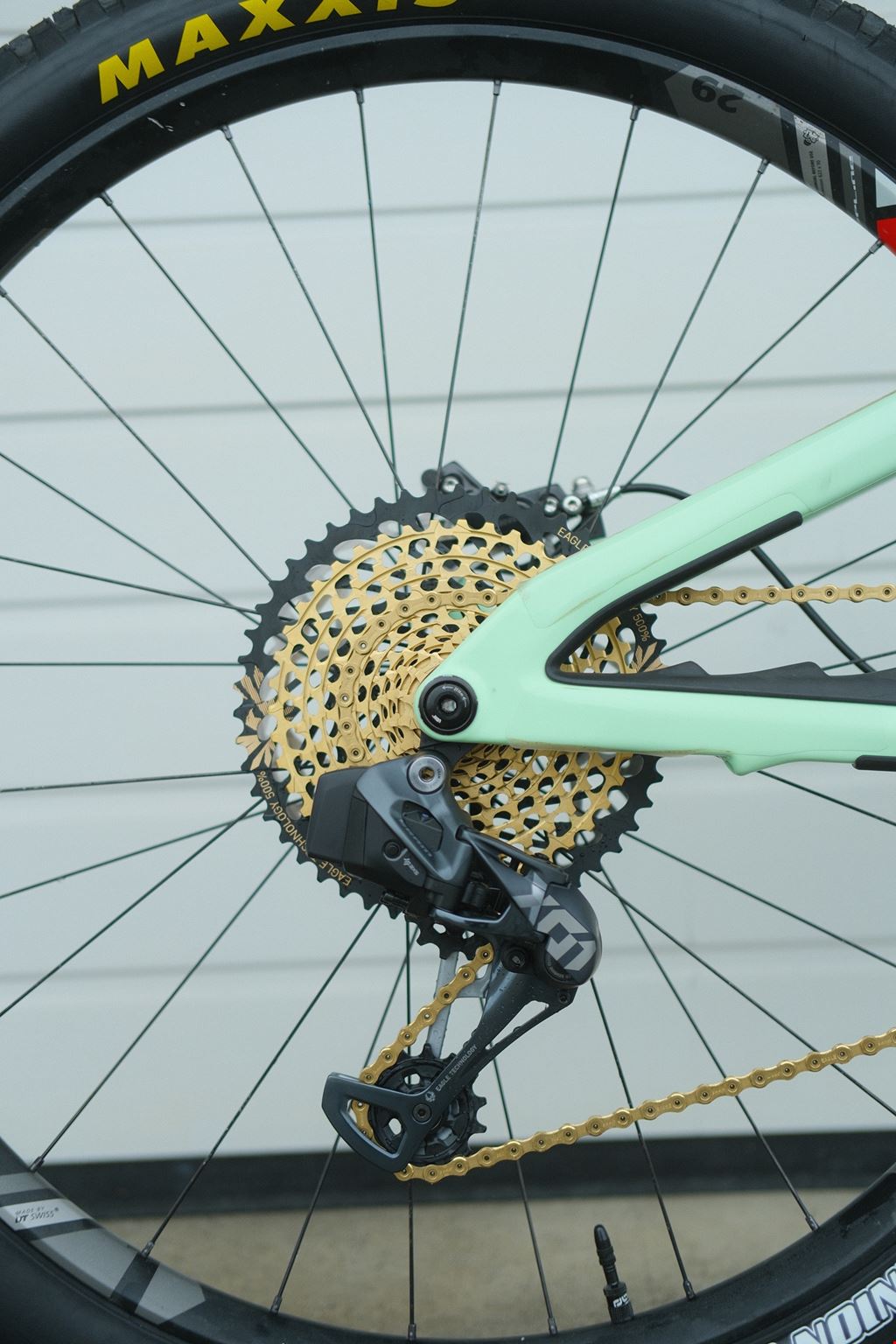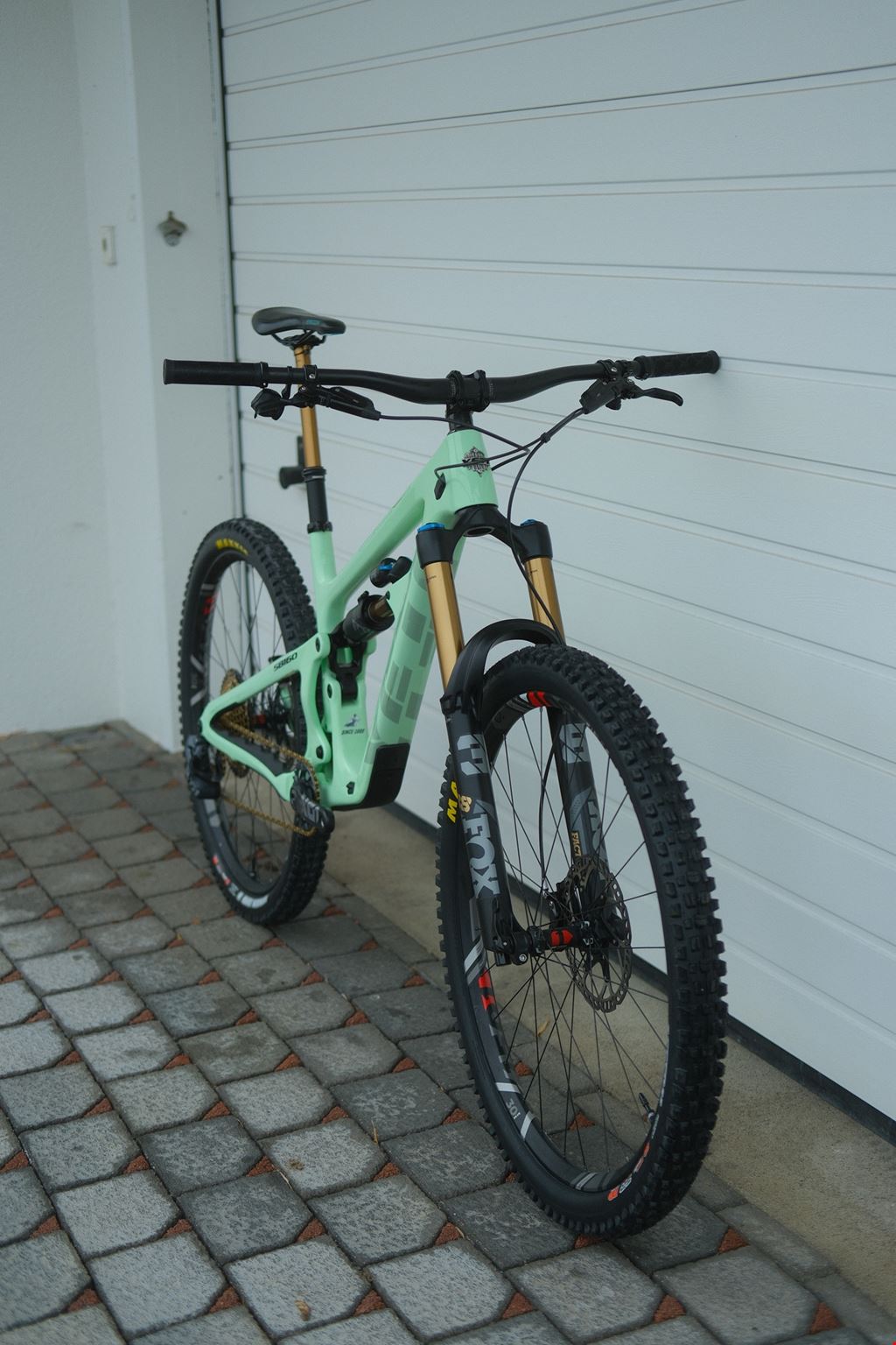 - Ich verkaufe mein Custom Yeti SB160 TURQ Series in Top Zustand. Das Bike wurde wenig gefahren, ist technisch und optisch in sehr gutem Zustand und wurde sehr gut gepflegt. Der Rahmen hat kaum Gebrauchsspuren und ist foliert. Zudem wurde Antrieb, Reifen und Griffe vor Verkauf komplett erneuert. Bike wurde von Mitarbeiter bei Yeti Cycles Schweiz aufgebaut, gefahren und gewartet (Mitarbeiter Bike). Darf gerne besichtigt werden (Besichtigung in Egg ZH oder Raum Zürich). Auf Anfrage kann ich mehr Bilder liefern. Parts Liste Rahmen: TURQ Series Carbon Frame Large Radium Dämpfer: FOX Factory Float X2 Gabel: FOX Factory 38 170mm GRIP 2 Radsatz: DT-Swiss XM1501 Spline 30mm (Neues DT-Swiss Felgenband und neuen e*thirteen Quickfill Ventilen) Schaltwerk: SRAM X01 Eagle AXS (Neu!) Shifter: SRAM AXS Pod 2 Controller (Neu!) Kassette: SRAM XX1 Eagle 10-52 (Neu!) Kette: SRAM XX1 Eagle Gold (Neu!) Kettenblatt: SRAM 32T Kurbel: SRAM X01 170mm Bremsen: SRAM Code RSC Bremsscheiben: SwissStop Catalys Pro 200mm (Vorne / Hinten) Sattelstütze: FOX Factory Transfer 150mm Remote: CaneCreek DropT Remote Sattel: Ergon SME3 Pro Ti Yeit Team Edition Vorderreifen: MAXXIS Assegai DD 3C GRIP 29 x 2.5 (Neu!) Hinterreifen: MAXXIS Minion DHR II DD 3C GRIP 29 x 2.4 (Neu!) Headset: CaneCreek IS 110-Series Hellbender (Lifetime Warranty) Lenker: YETI TURQ 800mm Carbon Bar (Keine Stürze!) Vorbau: RaceFace Turbine R 50mm Extras: - 2 Paar neue SwissStop RS Organic Bremsbeläge - Neue SRAM XX1 Gold Chain