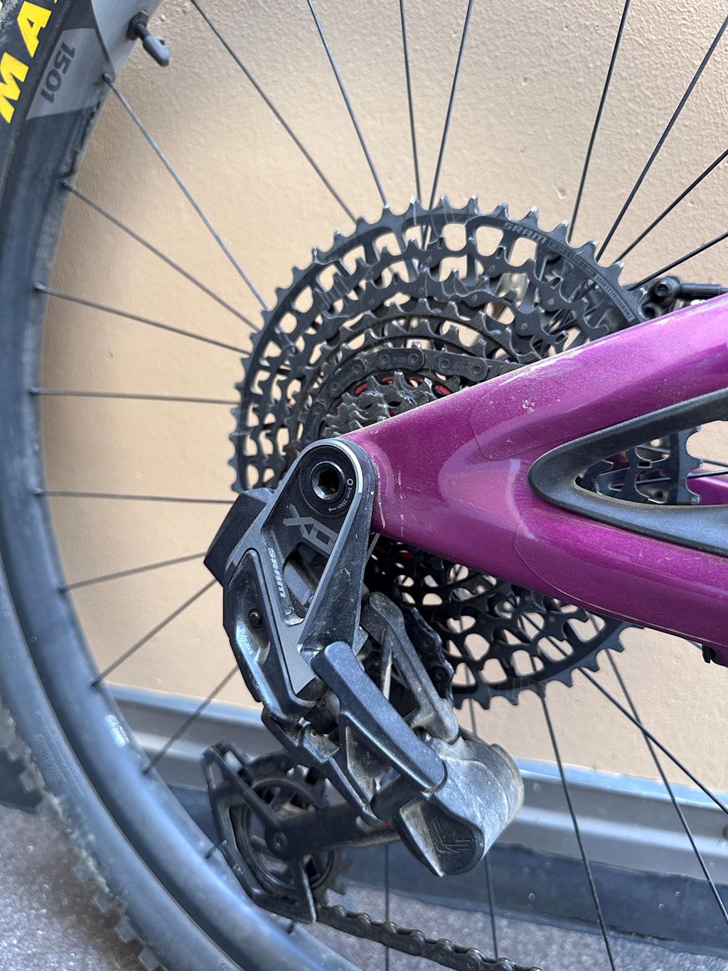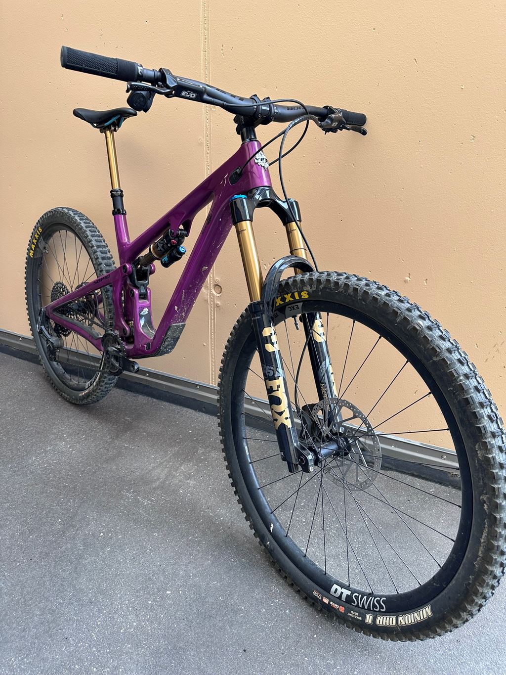 - Testbike ab Lager! Rahmen an Oberrohr, Unterrohr, Sitzrohr, Kettenstrebe und Sitzstrebe foliert! -Sram X0 AXS Transmission Ausstattung -TRP DH-R Evo Bremsanlage mit 203/180mm Bremsscheiben -Fox Factory 36 Grip X, 160mm -Fox Factory Float X, 140mm -DT Swiss EXC 1501 Carbon Laufräder -Reifen VR DHR II EXO+ 3C Terra, HR Minion DHR II EXO+ 3C Terra -Fox Transfer Factory Sattelstütze, 31.6x175mm -Yeti Carbon Lenker 780mm gekürzt www.biketechaarau.ch