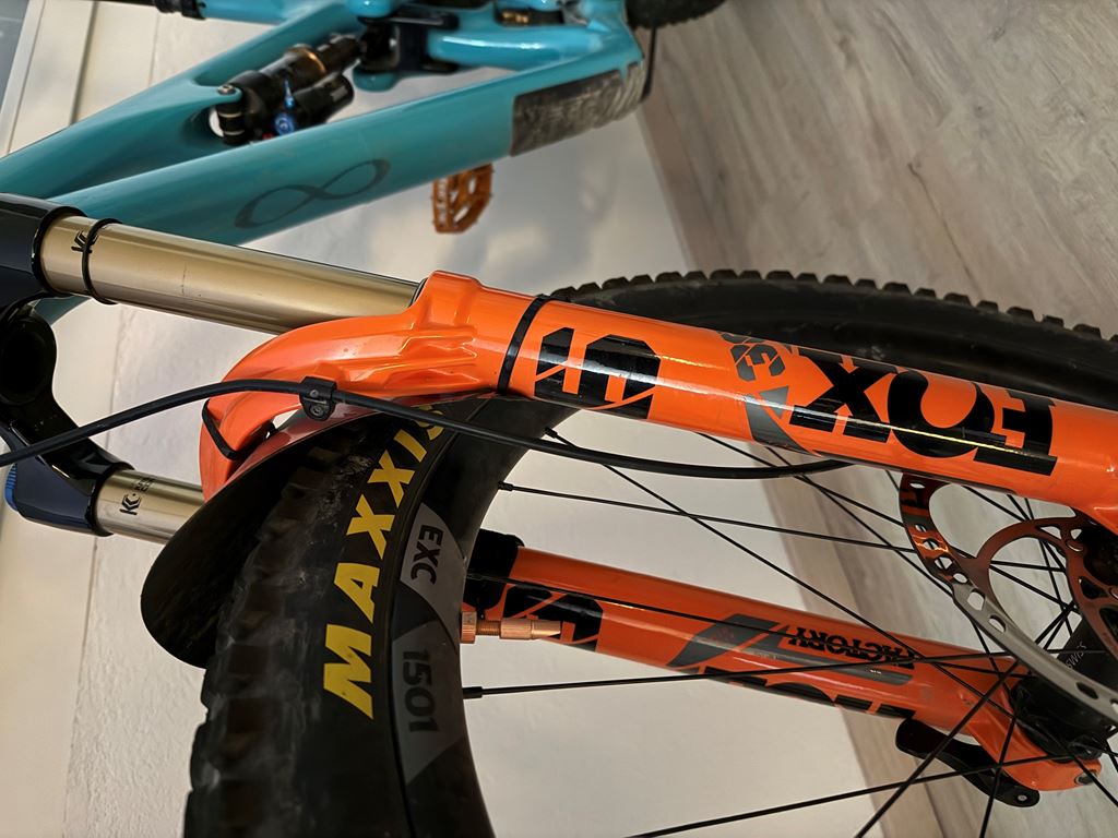- sehr schönes Enduro MTB von Yeti in TOP Zustand! Keine Bike Park Ausflüge, nur Home Trails. Grösse L, passt von circa 168cm bis 185cm Körpergrösse (bin 180cm und das ist perfect Match) ab Service Herbst 2024, 2025 nicht gefahren! Yeti SB140, 27.5" Räder (turq Rahmen) Federweg vorne: 160mm FOX 36 Factory Kashima, GRIP2 Kartusche Federweg hinten: 140mm FOX DPX2 Factory Kashima Bremse: Shimano XTR Laufräder: DT Swiss EXC 1501 Carbon Schaltung: Shimano XT komplett 1*12 e*thirteen Carbon Lenker Cane Creek Steuersatz Sq Lab Sattel One Up V2 Dropper Post Hope Pedale Reifen: vorne Maxxis Assegai, hinten Schwalbe Magic Mary Super Soft Gewicht inkl. Pedale liegt bei gut 13kg