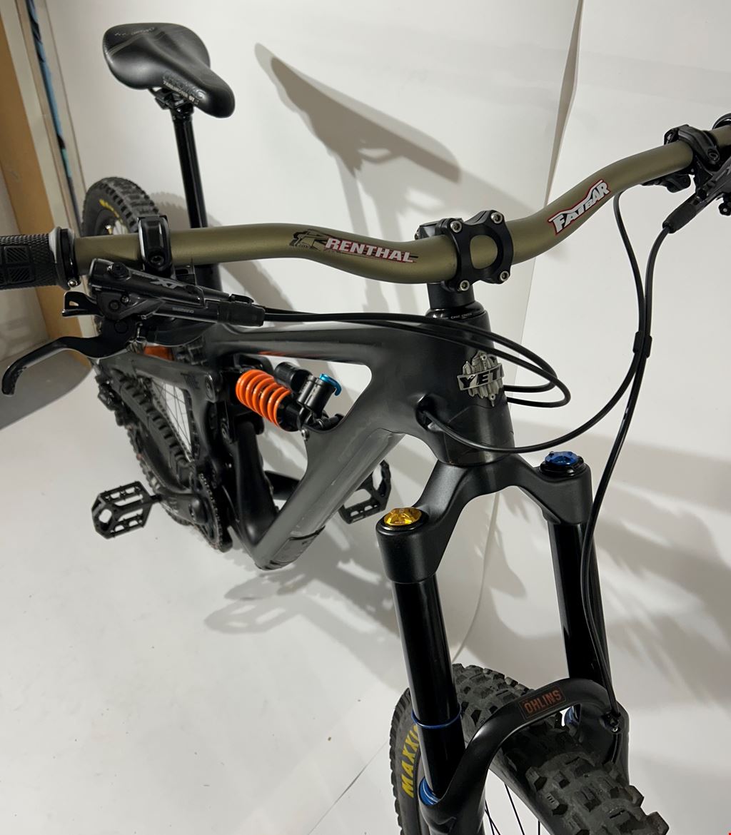 - Yeti SB165 Fantastisches Enduro-Baller-Gerät Hab mir die neuste Version gekauft, daher darf es weiterziehen. Top gewartet, sofort einsatzbereit! Parts: - Carbon-Rahmen mit 165 mm Federweg - Fox DHX2 Factory Coil-Dämpfer - Öhlins RXF36 m.2 180mm (Neuzustand) - Shimano XT 4er Bremse (neu) 2x203mm - Santa Cruz Reserve Carbon LRS mit Chris King Naben (27.5) - Maxxis Assegai DH vorne, DHR DD hinten - Carbon-Kurbeln, XTR/XT-12fach Schaltung Reifen, Griffe, Lenker, Dropper-Post sind neu. Rest siehe Bilder - Fragen gerne 👍