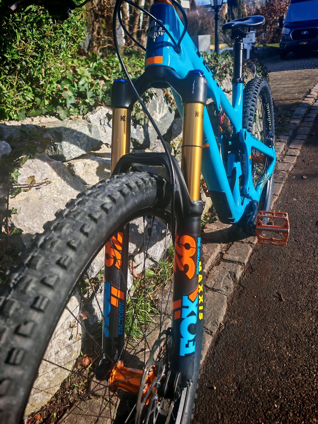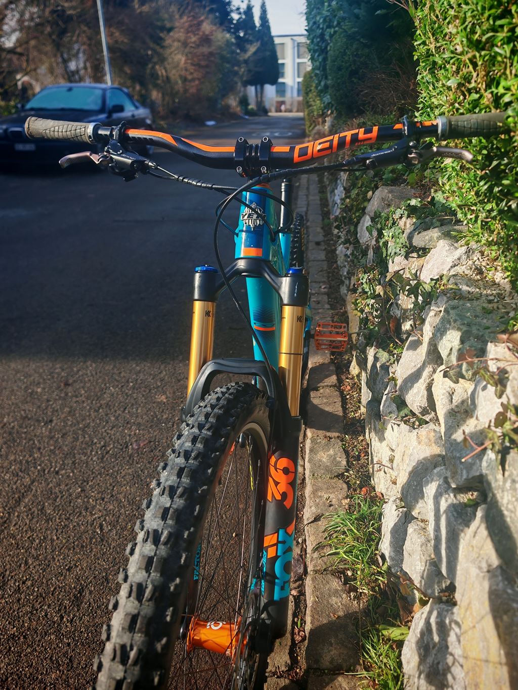 - Ich verkaufe hier mein Yeti SB130 Lunch Ride Turq mit einigen Custom Teilen und einem ultra coolen Look. Die Lunch Ride Version hat im Gegensatz zum normalen SB130 vorne und hinten jeweils 1cm Federweg mehr. Damit ist das Bike auch für harte Enduro Trails gewappnet und lässt sich trotzdem leichfüssig nach oben treten. Wenn du also EIN BIKE FÜR ALLES suchst bist du bei diesem Yeti genau richtig. Das Bike hat einen sehr stabilen Chris King Steuersatz, Deity Lenker und Industry 9 Naben mit einem extra lauten Freilauf. ;-) Alles in Orange was dem Bike einen einzigartigen Look verleiht. Die Hayes Dominion Bremsen haben brutale Power und wurden anfangs 2025 neu Montiert. Ebenfalls ganz neu ist die Sattelstütze. Das Bike wurde die letzten Jahre regelmässig gebraucht. Dank Folierung hat der Lack nur am Unterrohr und Hinterbau einige Kratzer. Das Bike wurde stets gut gepflegt. Einzig der Dämpfer bräuchte einen Service. Gerne kannst du bei mir zuhause eine Proberunde drehen und dich von diesem fantastischen Bike selbst überzeugen.