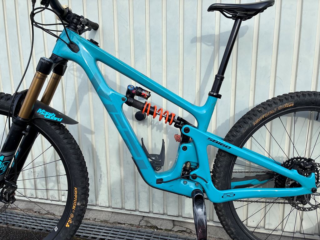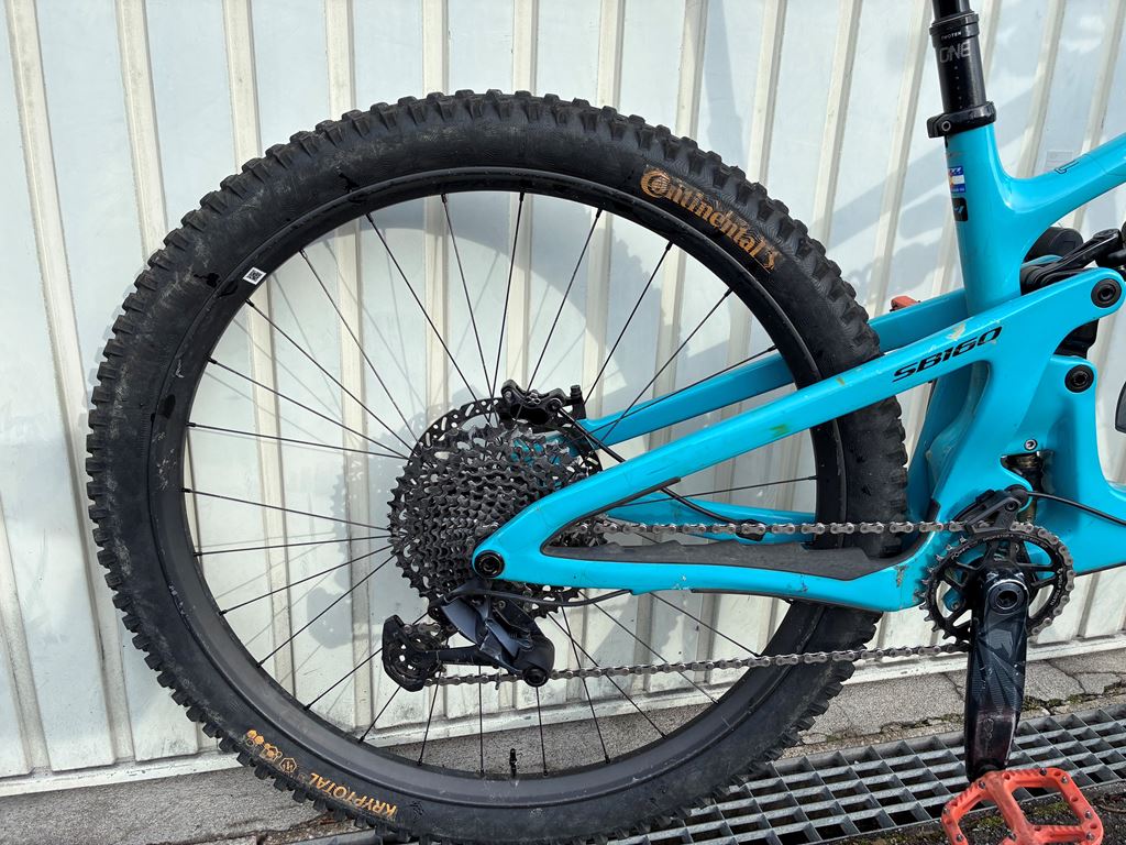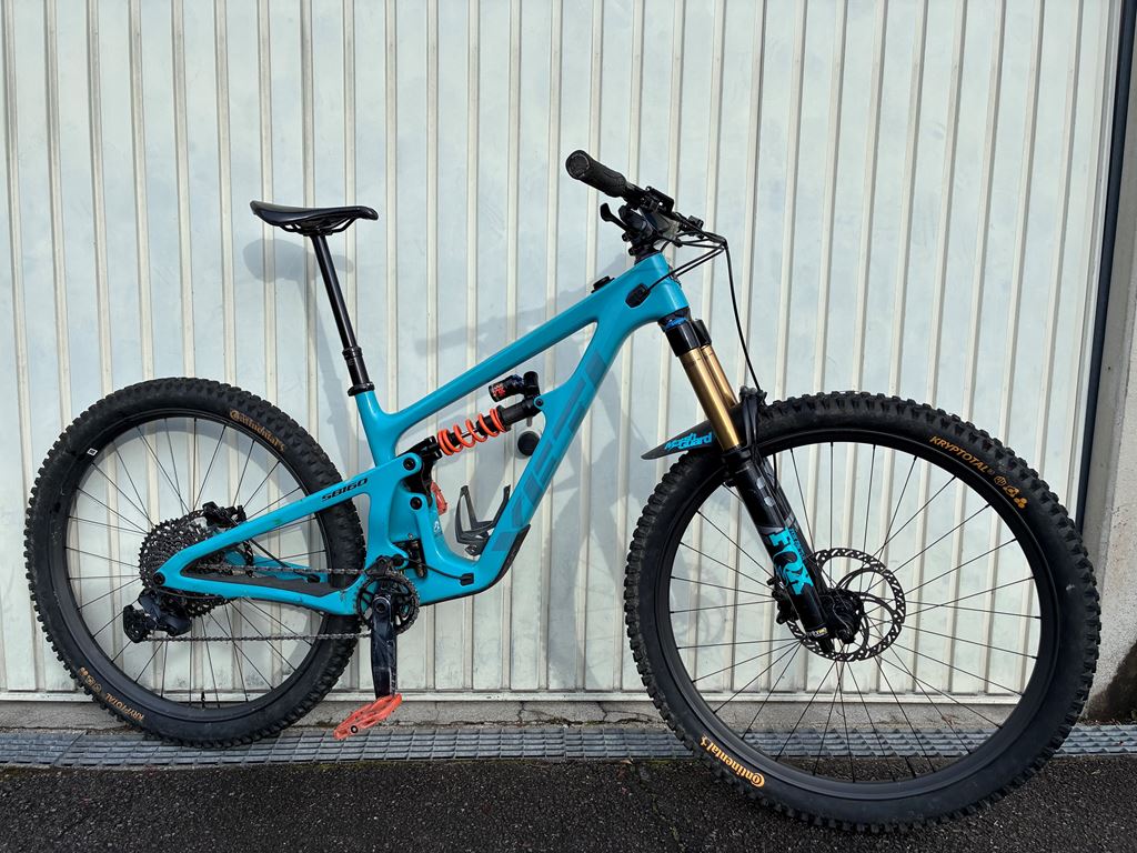 - Yeti SB160 size M 2024, bearing changed begin 2025. Framed protected with Invisiframe. rear Shock Fox DHX2 serviced 2025 Fork Fox 36 Grip2 with SmashPot (spring) or air. Damper changed in 2024. Serviced en 2025. Wheel Roval Traverse Carbon 2025 Tire Continental krytogal 2025 Groupes SRAM GX, Rear shifter new Brakes TrickStuff Direttissima Disk Trickstuff 203mm Seatpost One Up 210mm Saddle Epecialised HandleBar Rhental carbon 20mm raise Headset Rhental 40mm Chaine Guide