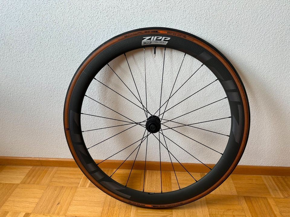 - ZIPP 303 Firecrest Carbon Tubeless Disc Laufradset Zipp 303 Firecrest Laufradsatz. Gekauft wurde er vor ca. 8 Monaten und hat somit noch Garantie, die Rechnung kann bei Bedarf gerne mitgegeben werden. Technisch und Optisch ist der Laufradsatz in einwandfreiem Zustand. Montiert sind aktuell Schwalbe Pro One Reifen in 28mm im Tubeless Setup. Diese werden mit verkauft, ich kann sie bei Bedarf aber auch noch runter nehmen. Ausgerüstet ist das Hinterrad mit dem XDR Freilauf für SRAM 12 Fach Schaltungen, es kann bei Bedarf aber auch auf Shimano oder Campagnolo umgebaut werden (Freilauf ist nur gesteckt).