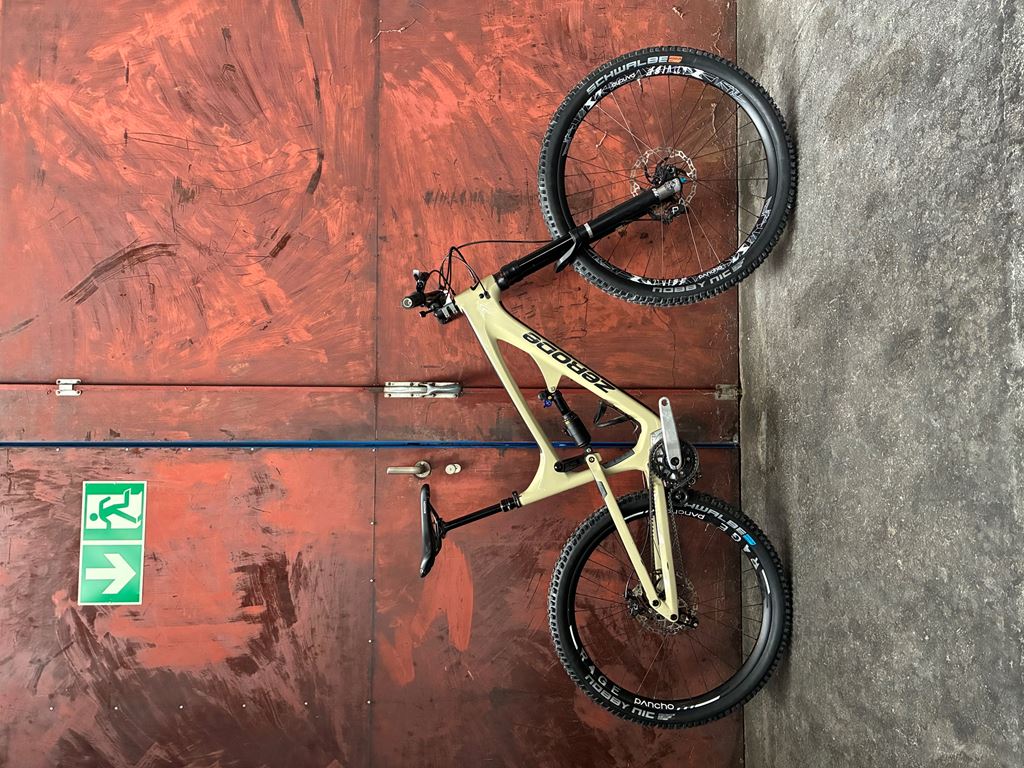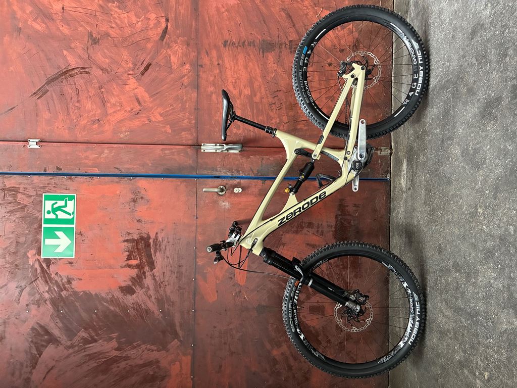 - Verkaufe hier mein Zerode Taniwha Mullet Enduro mit der Farbgebung "Clay", Grösse L (Reach 475mm). Spezifikation: - Rahmen: Zerode Taniwha Mullet Enduro 475mm Reach - Gabel: Manitou Mezzer Pro, 160mm, 44mm Offset - Dämpfer: Öhlins TTX2 Air, 210x55mm - VR: Pancho Vibe 29'', Reifen: Schwalbe Nobby Nic - HR: Pancho Rage 27.5'', Reifen: Schwalbe Nobby Nic - Antrieb: Pinion C1.12 Getriebe mit 12 Gängen mit 600% Übersetzungsbandbreite - Schaltung: Instinctive Cinq Schalthebel - Bremsanlage: Hayes Dominion A4 VO+HI - Gates Riemen - Sonstiges: -- Bremsscheiben: Galfer 203mm VO+HI -- Kurbel: Pinion Kurbelarme 175mm -- TAG Metals Sattelstütze und Lenker -- Ergon Griff und Sattel Keine Ahnung, warum es hier alle Bilder auf die Seite stellt. Ihr könnt Euch gerne melden, dann schicke ich Euch die Originalbilder - aufrecht =) Das Bike war ca. 14 Monate im Einsatz. Der Rahmen blieb in dieser Zeit leider nicht vor Lackabplatzer verschont; aber das gehört leider zu diesem Sport. Mir sind keine Mängel oder Schäden am Rahmen oder den Anbauteilen bekannt. Die Laufräder laufen rund und einwandfrei und das Pinion macht seine Arbeit. Das Bike ist aktuell bei ca. 3500 km Laufleistung. Die Leitungsführung bei der Gabel fehlt leider, da die Verschraubung kaputt ist. Die Befestigung mit dem Elektrikerband hält jedoch seit 2 Monaten ohne grosse Probleme. Ich habe das Bike immer gehegt und gepflegt. Vor einem Monat habe ich alle Lager geserviced. Der letzte kleine Service bei der Gabel war vorgestern. Der letzte grosse Service von der Gabel war vor 4 Monaten. Der Dämpfer hat noch keinen Service gesehen. Die Rahmen-Originalrechnung ist vorhanden (Kaufdatum 10.06.2024).