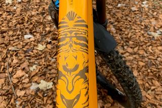 Es ist ganz Orange und mit einem Tiger Allmountain Styleguard verziehrt was es sehr aufföllig macht.