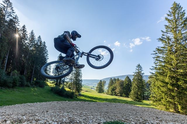 Leider habe ich das Bike für diese Disziplin ein wenig zu gross gewählt.Es handelt sich um ein Commençal Meta HT (Blau)von 2020 in Grösse L.