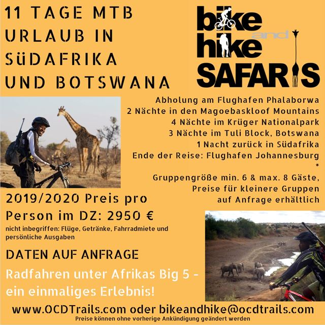 Für weitere Informationen besuchen Sie unsere Mutterfirma www.ocdtrails.com oder finden Sie uns auf Instagram unter @ocdtrails oder @bike_and_hike_safaris Kommentare