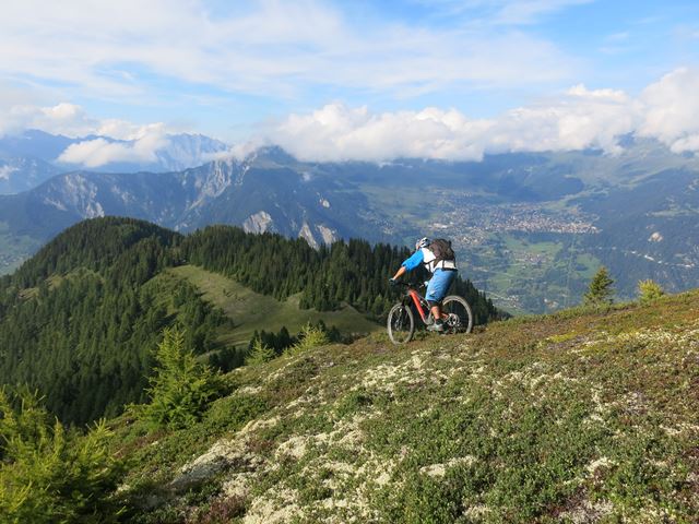 Die Bike Guides von Alpine-Trails haben sich auf das Singletrail Paradies Wallis spezialisert. Das neuste Angebote ist die Haute Route. Sie ist angelehnt an die berühmte Skitour von Chamonix nach Zermatt. Die Bikeversion startet in Verbier und führt Richtung Brig. Gleich wie bei der Skitour sind aber auch hier praktisch alle Ansitiege selber zu bewältigen.