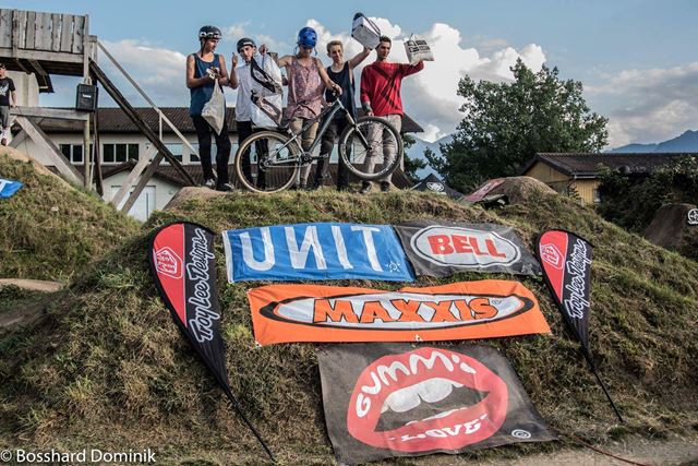 Podest Dirt Offspring Steffisburg, v.l.n.r: Lucas Huppert, Lars Lanz, Jannik Völk, Lukas Studer, Oli Hertach