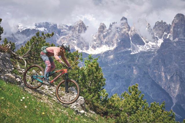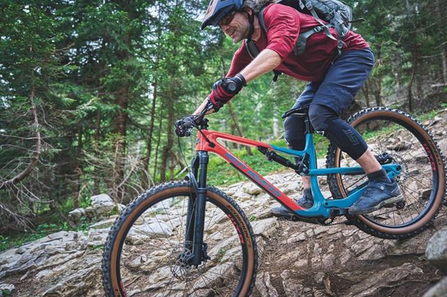 Auf knackigen Enduro-Trails wie beim Test haben sich abfahrtsorientierte Einstellungen mit etwas flacherem Lenkwinkel bewährt. Auch dann muss man keinerlei Abstriche in Sachen Agilität hinnehmen, sondern sieht sich jederzeit zu einem spielerischen Fahrstil verleitet, ohne dass es dem Instinct an Laufruhe mangeln würde. Im Gegenteil: Mit dem «flachen» Setup fühlt sich das Instinct fast wie ein kleines Enduro Altitude an. Zwar sind die Federwegsreserven des Instinct überschaubar, doch den vorhandenen Federweg nutzt das Bike sehr effektiv aus. Gefühlt sitzt man auf einem Bike mit deutlich mehr Travel, als es die 140 Millimeter Federweg am Heck vermuten lassen. Der Dämpfer und die Gabel mit 150 Millimeter Federweg agieren als harmonisches Duo mit sensiblem Ansprechverhalten. Erst in sehr ruppigem Terrain und bei gleichzeitig hohem Tempo kommt das Instinct an seine Grenzen. Ansonsten bügelt es mühelos über Wurzelteppiche und Felspassagen. Guten Grip bieten dabei die am Testbike aufgezogenen Pirelli Scorpion Reifen, die eine sehr gute Alternative zu den serienmässig verbauten Maxxis Pneus darstellen.