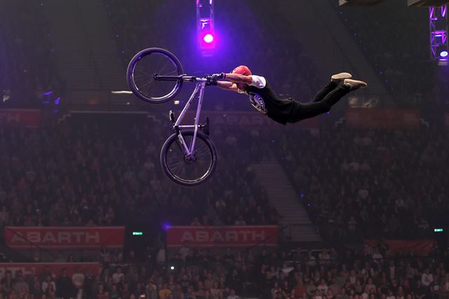 Und auch der 37-jährige Patrick Guimez aus Frankreich präsentierte dem Publikum eine Weltneuheit, die eigentlich nicht geplant war: «Ich habe dieses Jahr sehr hart gearbeitet, um hier die besten und vor allem die neuesten Tricks zu zeigen. Jeden Tag habe ich im Regen trainiert, um den „tripple flip“ (dreifachen Rückwärtssalto) hier zeigen zu können. Leider ist mir das nicht gelungen, aber das wichtigste ist, gesund und glücklich zu bleiben. Immerhin habe ich so doch noch eine Weltpremiere zeigen können: den double flip turndown.» Man darf also gespannt sein, was uns Guimez am 14. Mai in Bern 6 zeigen wird!