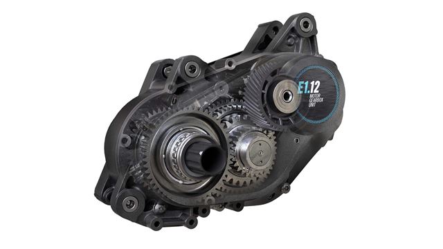Die «Motor Gearbox Unit» von Pinion wirft eben jenes sehr fehleranfällige Grundprinzip über den Haufen. Bei der MGU kombiniert Pinion einen Antrieb mit nominell 85 Newtonmeter maximalem Drehmoment mit einer gekapselten 12-Gang Getriebeschaltung. Die Kraftübertragung vom Motor auf das Hinterrad geschieht dabei per Riemenantrieb (Standard) oder per Kette (bei Rotwild). Das resultierende All-in-one-Paket baut minimal grösser als ein E-Motor vergleichbarer Leistung, bringt allerdings mit 4100 Gramm Gewicht spürbar mehr auf die Waage als die Antriebe der Konkurrenz. Durch den Wegfall von Schaltwerk und Ritzelpaket wird das Mehrgewicht der Antriebseinheit jedoch relativiert. Auf das Systemgewicht des Bikes hochgerechnet bleibt ein überschaubares Mehrgewicht von etwa 300 Gramm übrig. Dieses Mehrgewicht ist allerdings optimal platziert, nämlich tief und zentral im Bike, wo es sich kaum auf dessen Fahreigenschaften auswirkt. Zum Ausgleich wird die ungefederte Masse am Hinterbau spürbar reduziert, was zu einem sensibler und feinfühliger ansprechenden Hinterbau führt.