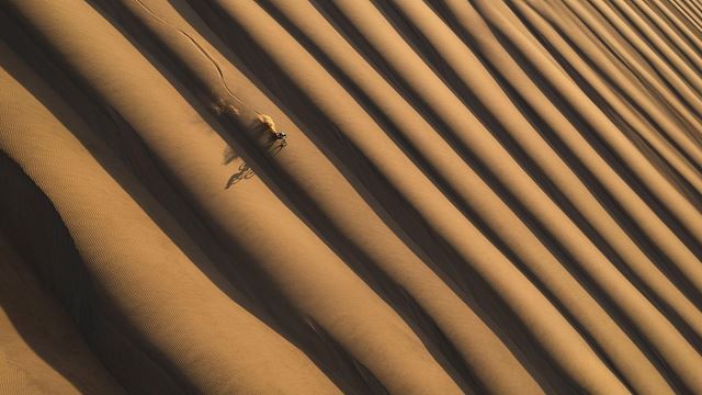 Bereits seit einiger Zeit dürfen wir die einzigartigen Fotos des jungen Franzosen bestaunen. Regelmäßig sehen wir seine Shots in diversen Publikationen und online Medien, wobei er uns jedes Mal wieder mit neuen Ideen überrascht. So auch in diesem Jahr mit einem Shot mit Hilfe einer Drohne in Nazca, Peru. Gemeinsam mit MTB-Virtuose Kilian Bron konnten in enger Absprache ein Foto choreografiert werden, welches die wellenartigen Muster der Wüste einfängt, ohne dabei die Dynamik des Freeridens ausser acht zu lassen.