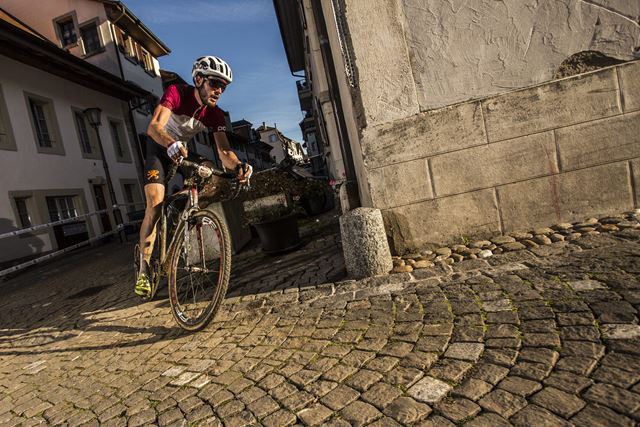 Strecke für Steuerkünstler Der Parcours führte über eine lange Treppe hinauf ins Schloss von Estavayer-le-Lac, durch enge Durchgänge in der Schlossmauer, dann über die Pflastersteine der Altstadt, garniert mit einer Steilkurve, einer Wellenbahn und weiteren Elementen, die man eher aus dem Freestyle-Sport kennt.
