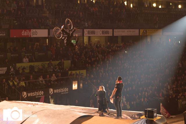 Mein letzter Sprung des Abends hat mich ein wenig enttäuscht, da ich beim Flip Tuck No Hander meine Hände nicht vom Lenker nehmen konnte und mir dabei die Schulter ein wenig ausgerenkt habe. Zusammen mit den anderen haben wir dem Publikum eine Show auf höchstem Niveau geboten: Double Heelclicker, Frontflips, Cashroll, Double Backflip, 360 Superman Seatgrab Indie to Tailwhip und Nikolis legendärer Twister.