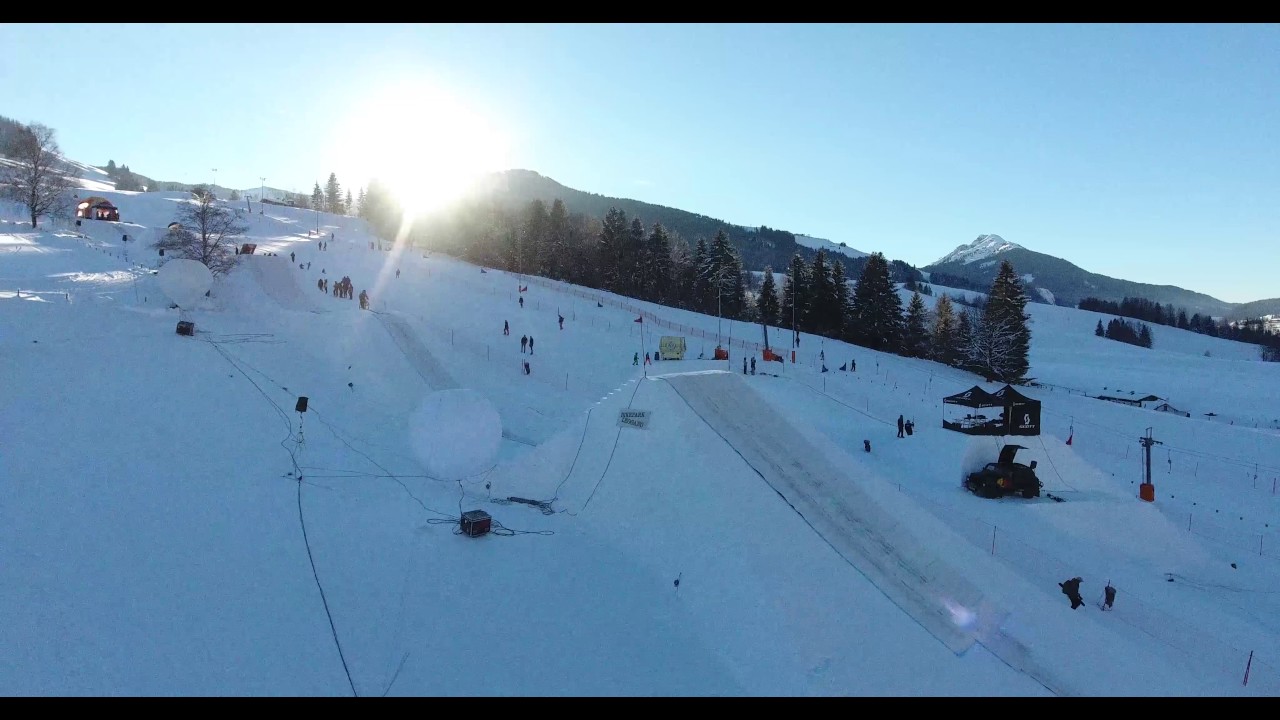 Die Crew rund um Kurs Builder Markus Hampel bauen entlang des Schanteilift einen komplett Slopestyle Kurs aus Schnee, zum teil ungewohnter Anblick für die Zuschauer und ungewohntes Terrain für die Athleten.