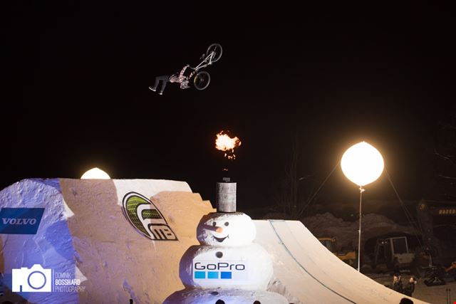 Während einige Rider bei diesen eisigen Temperaturen nicht ganz warm wurden, teilten sich die beiden Italiener die Podest plätze unter sich auf. Toto aka Torquato Testa gewann den FMB Contetst mit Opposite Cork 720, Flip Nohand über den Bonerlog, Doubel flip am Stepup und einen regulären Cork 270 am letzten.